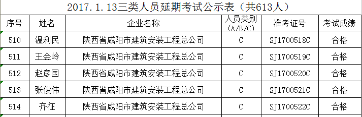 現(xiàn)將全省2017年1月13日受理的袁國(guó)慶等613人的建筑施工企業(yè)“三類人員”繼續(xù)教育考試成績(jī)予以公布,并就有關(guān)事項(xiàng)通知如下: